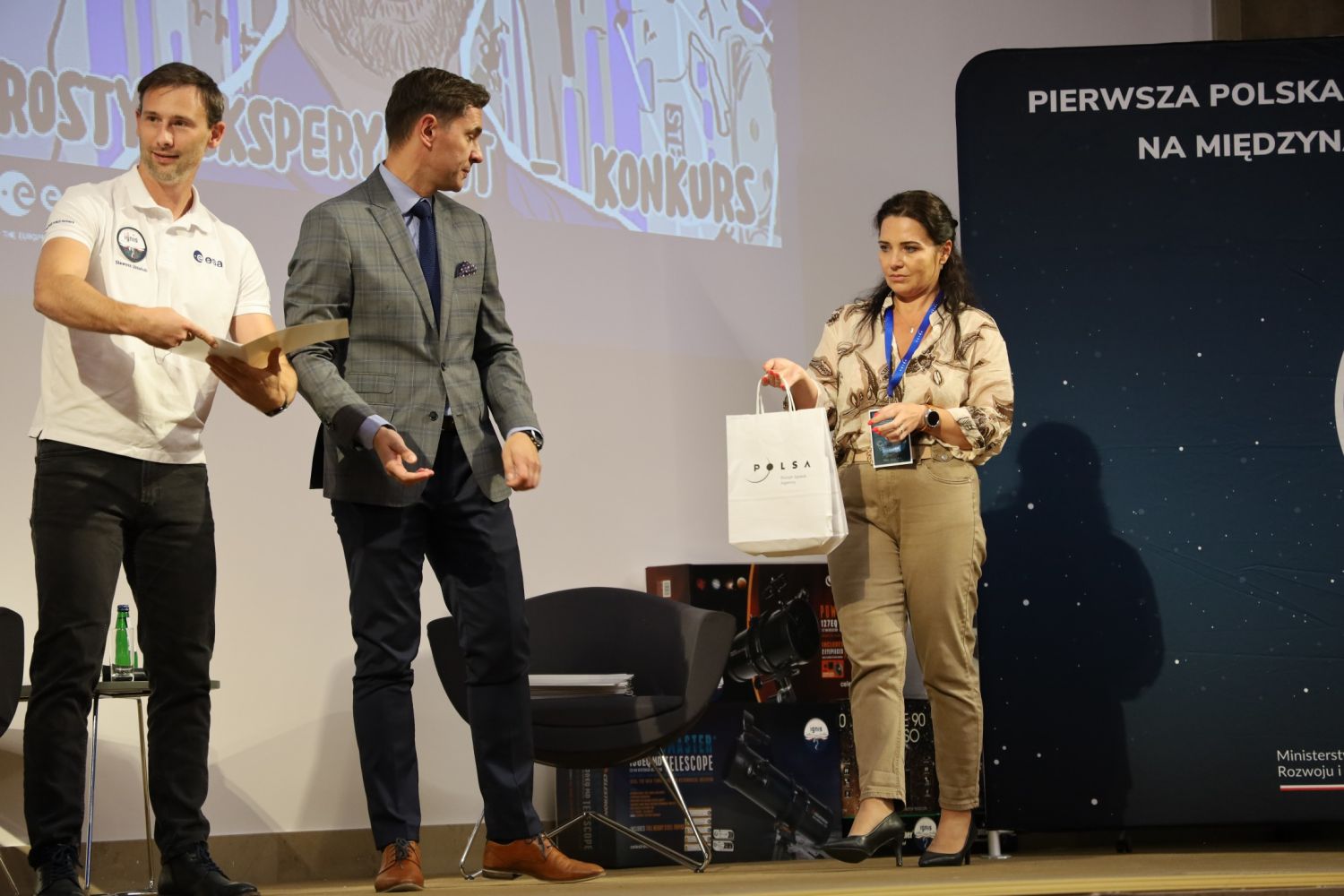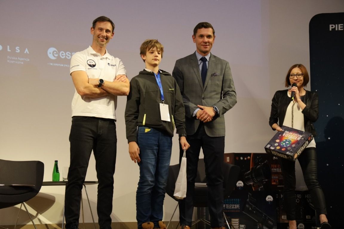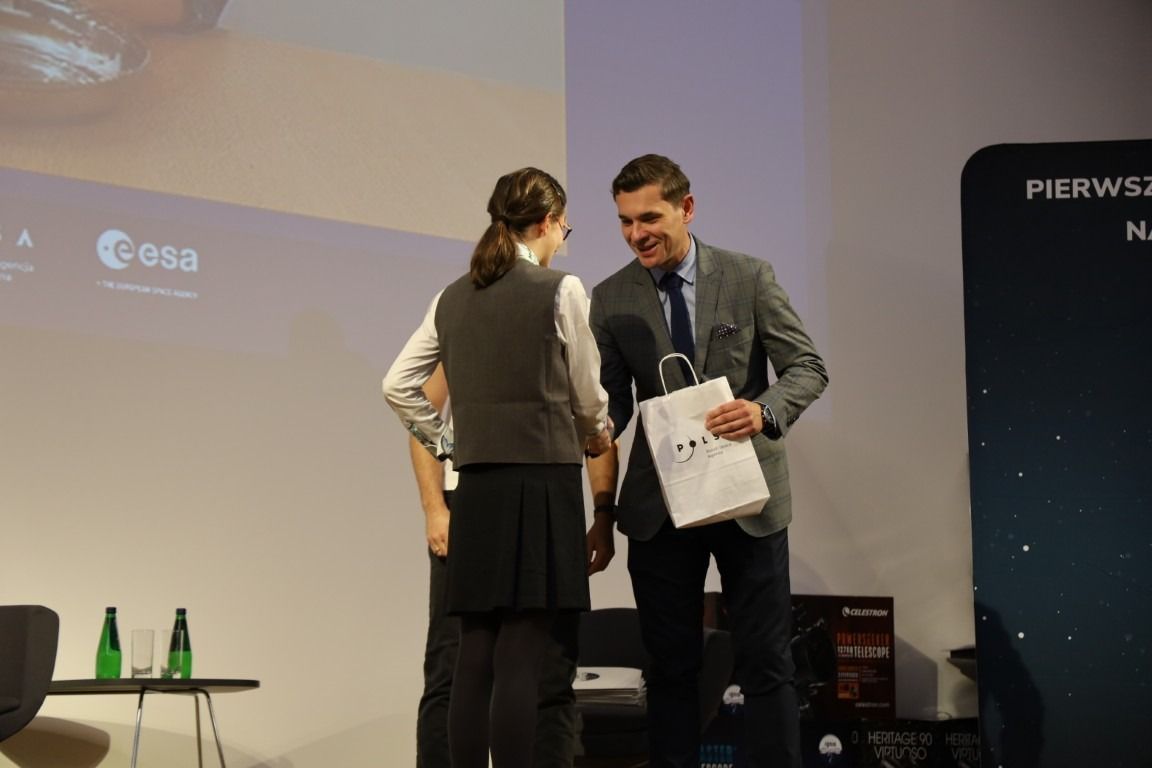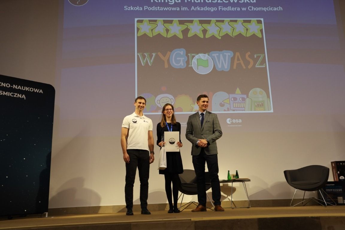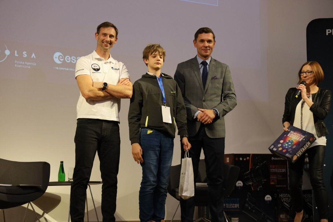 – Dziękujemy, że tak licznie zechcieliście wziąć udział w konkursach. Serdecznie wszystkim gratuluję. Trzymamy kciuki za Wasz dalszy rozwój, za inspiracje naukami ścisłymi - matematyką, fizyką, ale też za wrażliwość estetyczną w parzeniu na świat – co wykazaliście w konkursach plastycznych. Gratuluję również Waszym rodzicom, mentorom, a jako fizyk szczególne podziękowania kieruję do nauczycieli, doceniam Wasz trud i wkład w uczenie przedmiotów związanych z badaniami kosmicznymi. – podkreśliła podczas spotkania z dziećmi i młodzieżą prezes Polskiej Agencji Kosmicznej Marta Wachowicz.