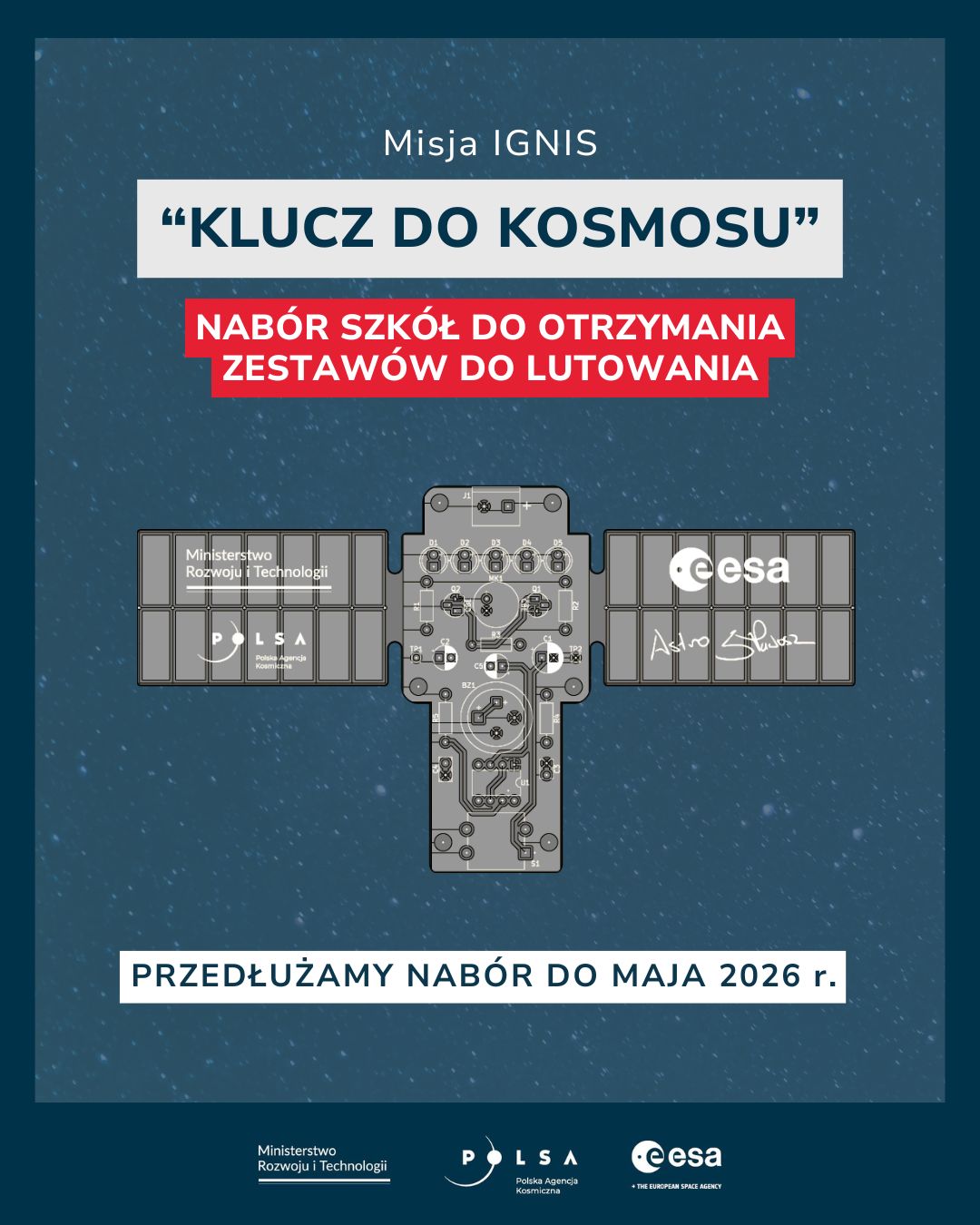 By wesprzeć nauczycieli w realizacji projektu, od drugiej połowy stycznia Polska Agencja Kosmiczna będzie prowadziła szkolenia online z nauki lutowania. Szczegóły oraz zapisy niebawem.